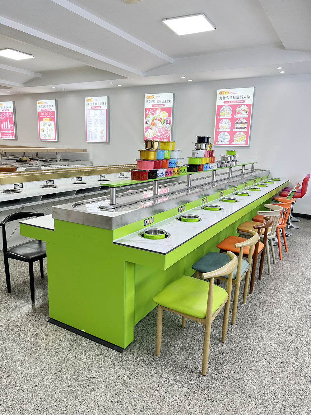 岳灵峰(佛山市岳灵峰金属制品厂)的旋转火锅设备虽未公开专利或官方型号体系,但基于用户反馈与产品配置实况,其核心T色功能可归纳为以下四类工程化设计亮点: